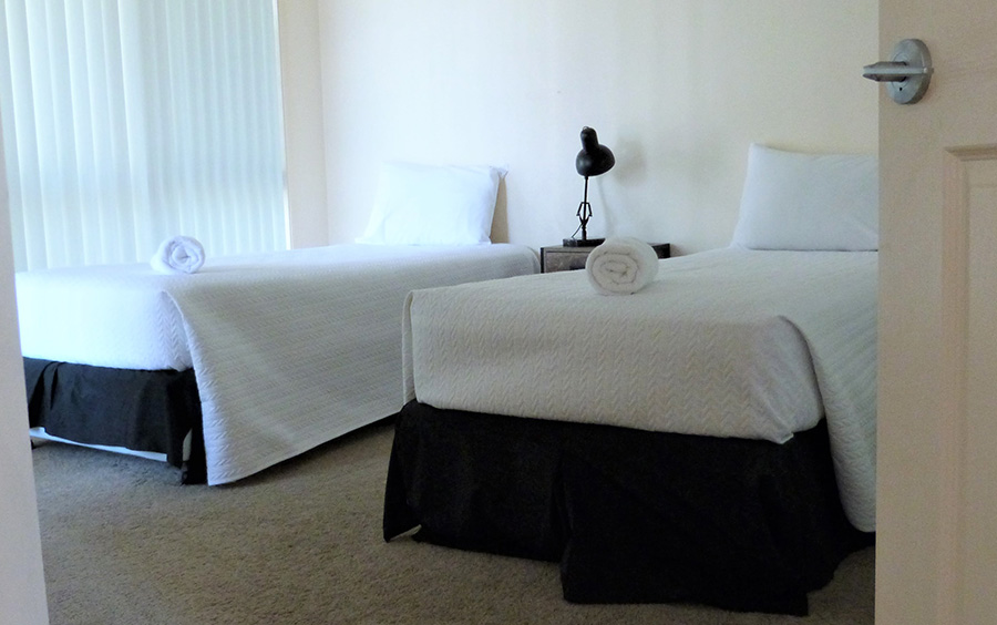 Three Bedroom Townhouses consist of two spacious bedrooms on the second level, each with a Queen bed or singles in some to cater for the needs of extended families. The middle level features a second lounge with a sofa bed and a separate balcony with outdoor furniture for comfort and relaxation. This level also services the bathroom, while another restroom is available on the ground floor.